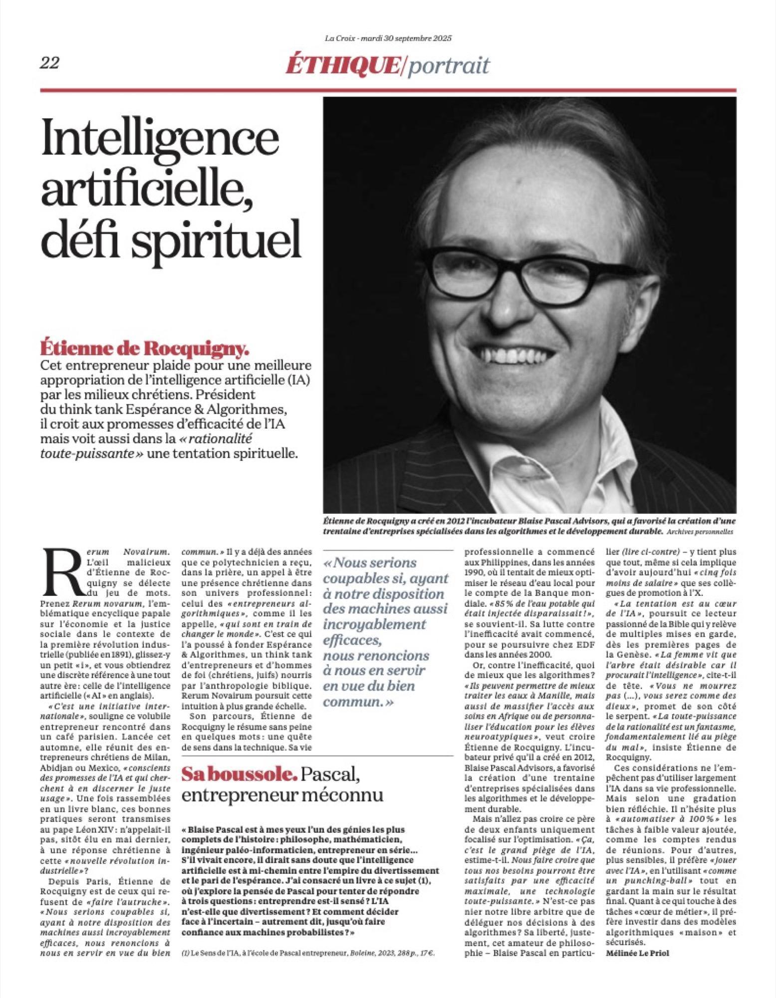 كشفت صحيفة "لا كروا" الفرنسية عن مقاربة مختلفة للذكاء الاصطناعي يقودها إتيان دو روكيني، رئيس مركز "الأمل والخوارزميات" ومؤسس شركة "بليز باسكال أدفايزرز".