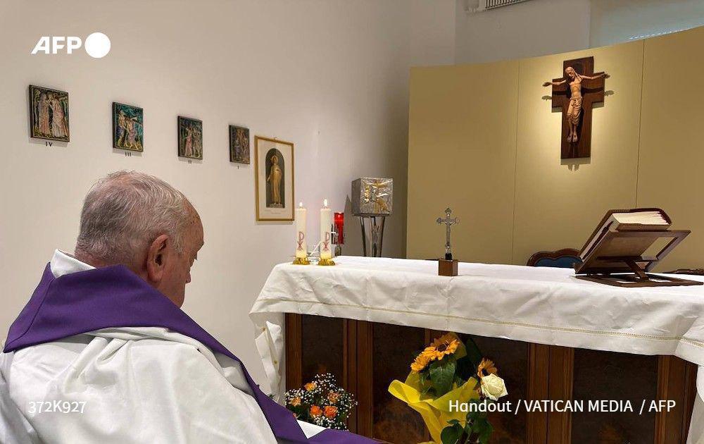 نشر الفاتيكان أول صورة للبابا فرنسيس (88 عاماً) منذ دخوله المستشفى قبل شهر بسبب التهاب رئوي. تظهر الصورة البابا وهو يحتفل بالقداس في كنيسة غرفته بالمستشفى، مما يشير إلى تحسن حالته الصحية رغم بطء التعافي. 👇
