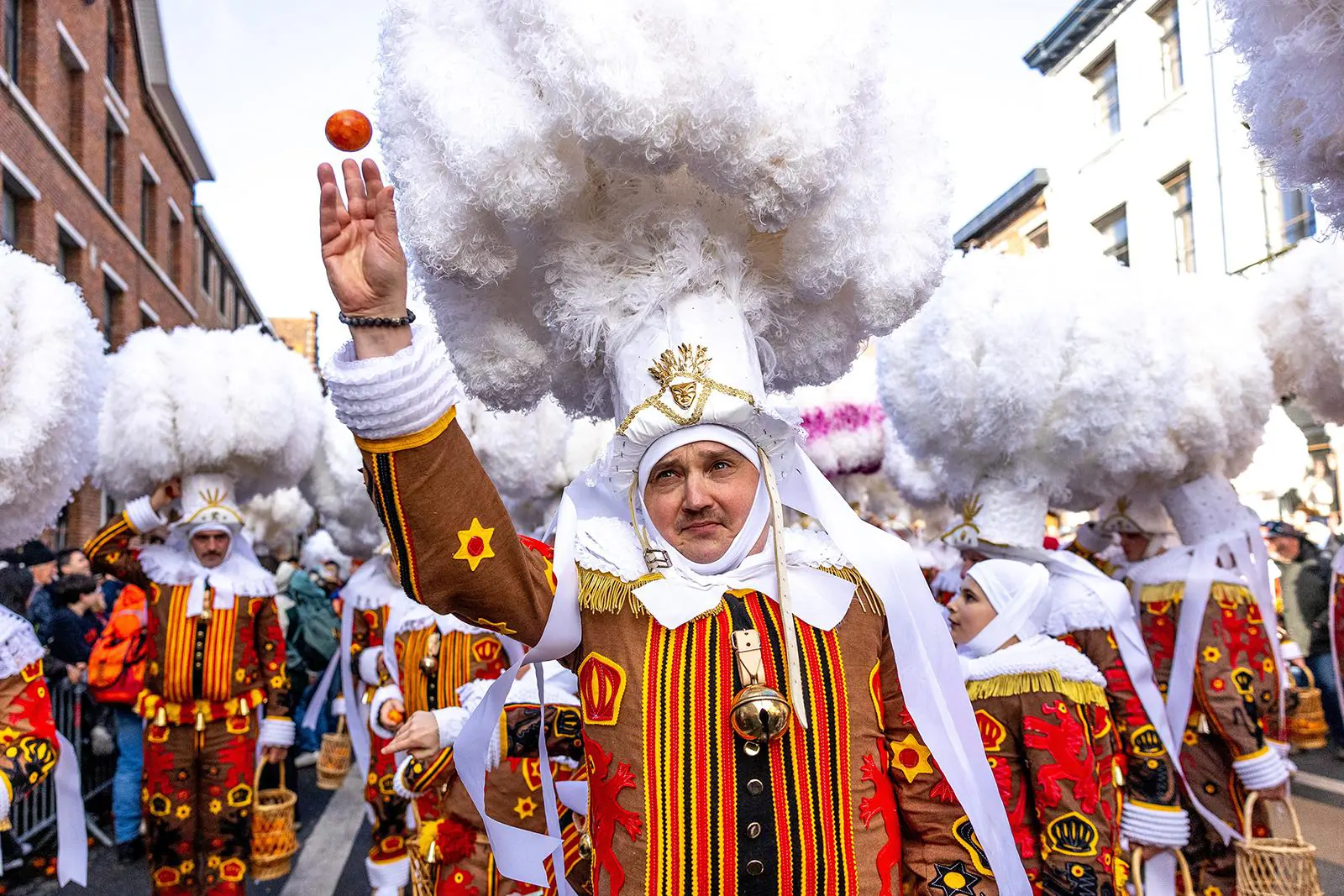 يمرّ المشاركون في موكب جمعية القديسة آن عبر حيّي بايووتر وماريني في يوم ماردي غرا، الثلاثاء ١٧ فبراير ٢٠٢٦، في نيو أورليانز. (صورة من وكالة أسوشيتد برس/ماثيو هينتون)