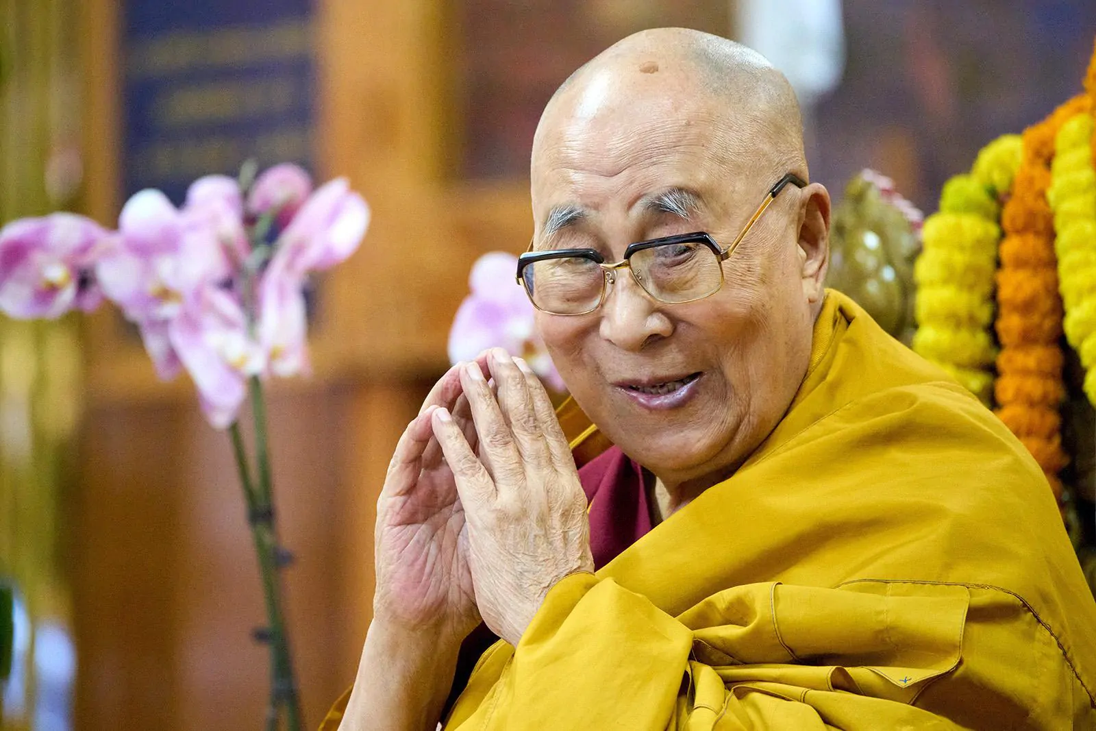 الزعيم الروحي التبتي الدالاي لاما، 90 عامًا، يترأس فعالية صلى خلالها المنفيون التبتيون من أجل طول عمره في دارامشالا، الهند، الاثنين 23 فبراير/شباط 2026. (صورة من وكالة أسوشيتد برس/أشويني بهاتيا)
