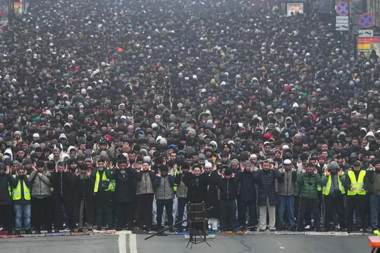 آلاف المسلمين يؤدون صلاة عيد الفطر في سانت بطرسبرغ بروسيا (أسوشيتد برس)